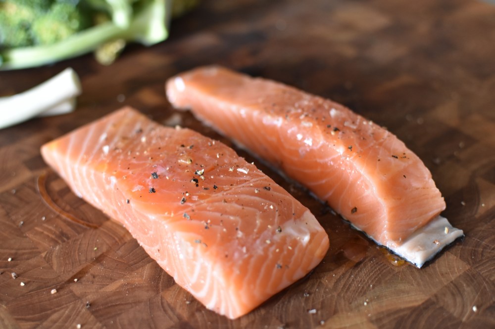 - 2-3 salmon fillet steaks (with or without skin), room temperature