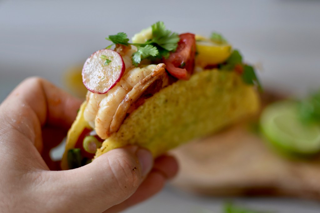 Don’t like prawns? You can easily serve the tacos using battered fish fillets/fingers instead. It adds a delicious crunch. If you like that idea, but still like prawn, you could also try store bought tempura prawn.