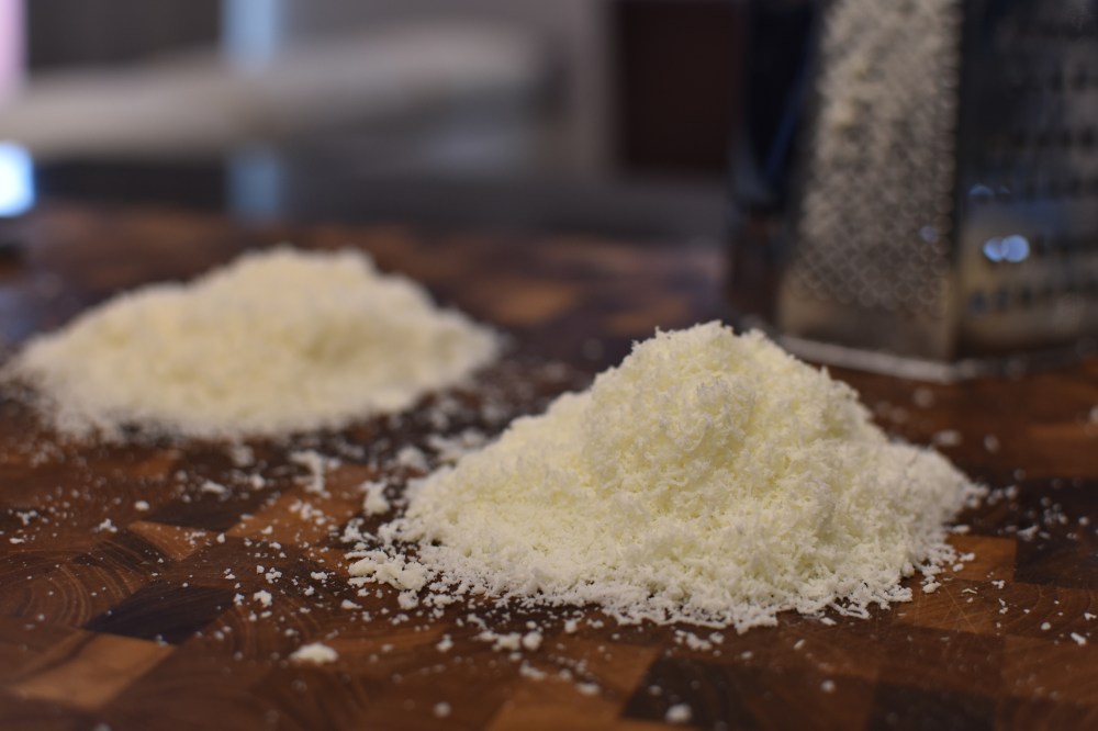 - a box grater with a super fine side (if you don’t have one – buy one! xD. I’m saying this with a heavy heart but, you may otherwise opt for ready (finely) grated versions of the above cheese!)