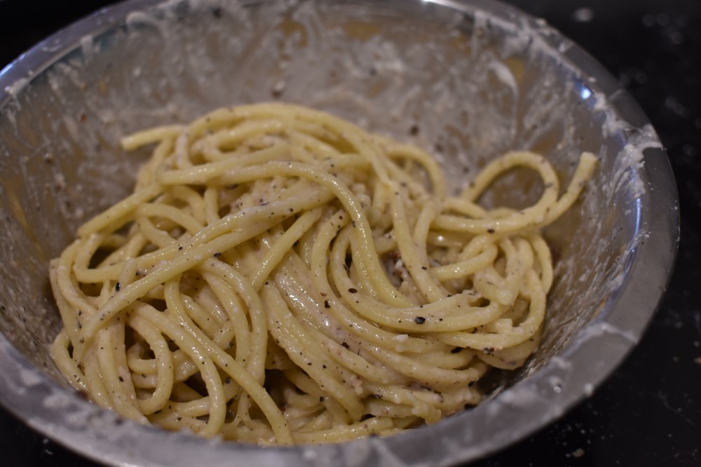 Cacio e Pepe. Literally translates to “cheese and pepper”. Now let’s be clear, I’m not Italian, and do not claim that this is the perfect traditional method. This is my own take on this simple dish, with tips of how to achieve a truly delicious humble plate of pasta with minimal fuss. As there’s not a lot of ingredients, the magic is all in the technique. Make sure you read through the notes section in this one! I’ll be with you every step of the way 🙂