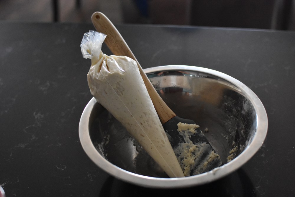 - Transfer to a piping bag equipped with a 1 cm nozzle.