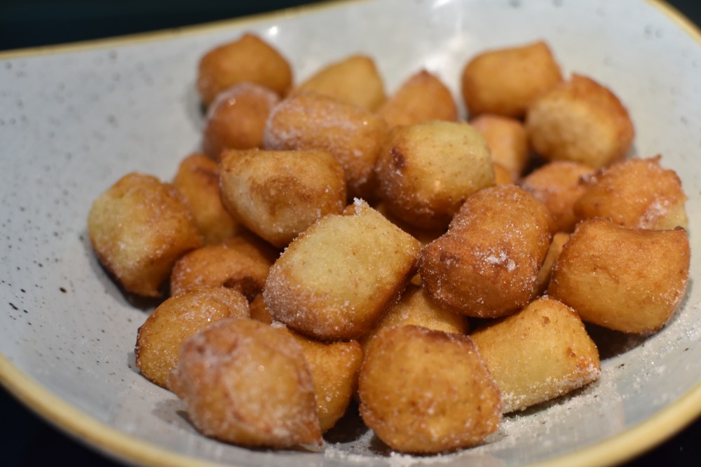 When piping and cutting these little nuggets of deliciousness make sure than you are not more than 5-10 cm away from the oil. The higher you are, the more you’re going to make a splash. Bubbling hot oil on skin is not a pleasant experience. Having an extra pair of hands helps. One on piping duty. The other on cutting duty. Teamwork at its best.