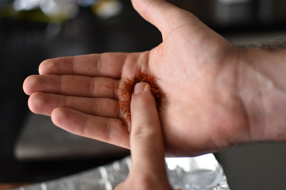 - Toast your saffron for 30 seconds on each side. Remove and set aside.
