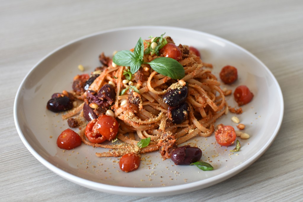 This is fabulous! I first discovered this dish, if itβs the same one, called Trapanese, from a Nigella cookbook. Her recipe puts everything but the pasta in the blender. amazing. I just watched Stanley Tucci on his show in Sicily, and he mentioned something called mulita, which are breadcrumbs cooked with anchovies. I need to find this product! Great blog!