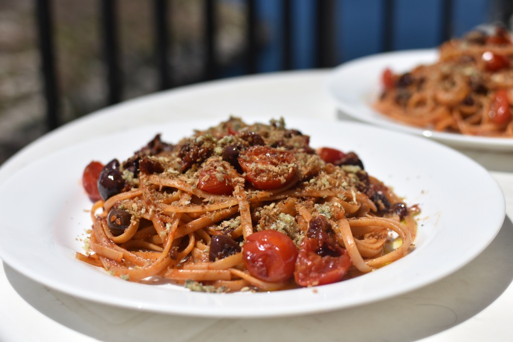 You can easily swap out the linguines for any other type of pasta of your preference. When I can find, I love using frilled pasta such as mafaldine/reginette as it just clings to the sauce and pangrattato.